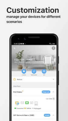 Dincolo de aceste caracteristici esențiale, ai la dispoziție o suită extinsă de unelte avansate. Activează tethering-ul mobil automat 4G/5G, gestionează accesul dispozitivelor, verifică starea porturilor și actualizează firmware-ul cu un singur tap. Poți salva setările routerului, configura legături IP, utiliza Wake-on-LAN (WOL), redirecționa porturi și programa reporniri, toate dintr-o interfață unificată. Primește notificări importante de sistem pentru a fi mereu la curent cu evenimentele din rețeaua ta.