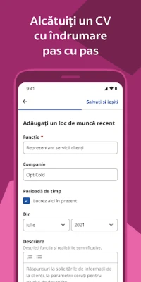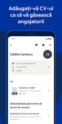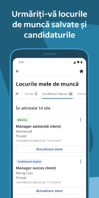 Platforma Indeed vă permite să vă construiți un profil profesional impecabil, fie prin încărcarea CV-ului existent, fie prin utilizarea instrumentului nostru de creare a CV-urilor. Odată pregătit, procesul de aplicare devine extrem de simplu, permițându-vă să trimiteți candidaturi cu doar câteva atingeri, fără a fi nevoie să reintroduceți aceleași informații. Rămâneți la curent cu statusul fiecărei aplicații prin sistemul de monitorizare integrat și primiți notificări în timp real când angajatorii v-au vizualizat sau v-au răspuns la candidatura trimisă pe Indeed.