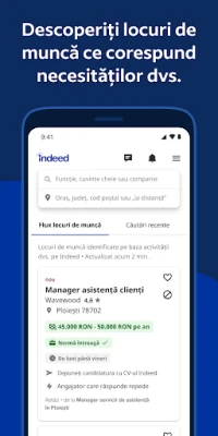 În plus față de căutarea și aplicarea la locuri de muncă, Indeed vă oferă o multitudine de resurse esențiale pentru o decizie informată. Accesați peste 700 de milioane de recenzii și evaluări pentru companii, precum și informații salariale pentru peste 1,1 miliarde de posturi, defalcate pe funcție, companie și locație. Descoperiți roluri care se potrivesc stilului dumneavoastră de viață, utilizând filtre avansate pentru opțiuni flexibile precum munca la distanță, joburi part-time, posturi de freelancer, oportunități guvernamentale sau locuri de muncă ce permit lucrul de acasă. Indiferent de etapa carierei în care vă aflați, Indeed vă sprijină să vă prezentați cel mai bine, de la prima aplicare la interviul final. Indeed ajută oamenii să se angajeze.
