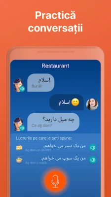 Viitorul achiziției lingvistice începe cu Mondly prin simularea unor conversații autentice, cotidiene. Încă din primul contact, vei fi implicat într-un schimb de replici între doi interlocutori, descoperind organic cuvinte esențiale și învățând cum să le integrezi în propoziții și expresii coerente. Prin sesiuni de doar 45 de minute, vei fi capabil să reiei și să stăpânești întreaga discuție, folosindu-ți propria voce. Tehnologia avansată de recunoaștere vocală, dublată de algoritmi inteligenți de învățare repetitivă, transformă Mondly într-un instrument de neegalat pentru a-ți dezvolta fluența în persană.