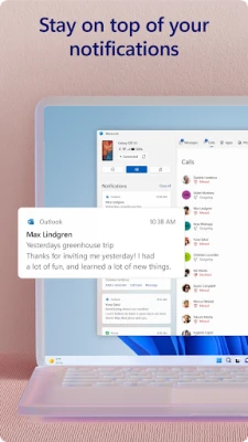 Bucură-te de telefonul tău direct de pe PC. Accesează instantaneu tot ce iubești de pe smartphone-ul tău, chiar de pe computer. Conectează-ți experiențele mobile și desktop pentru o productivitate sporită și o interacțiune fluidă, fără efort.